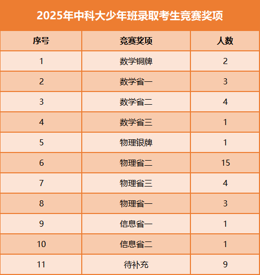 在五大学科竞赛,尤其是数学和物理竞赛中拿到省奖的考生,更容易通过中科大少创班的初审,也更容易被中科大少创班录取!在中科大少年班当中数学省三、物理省三的考生都不少。