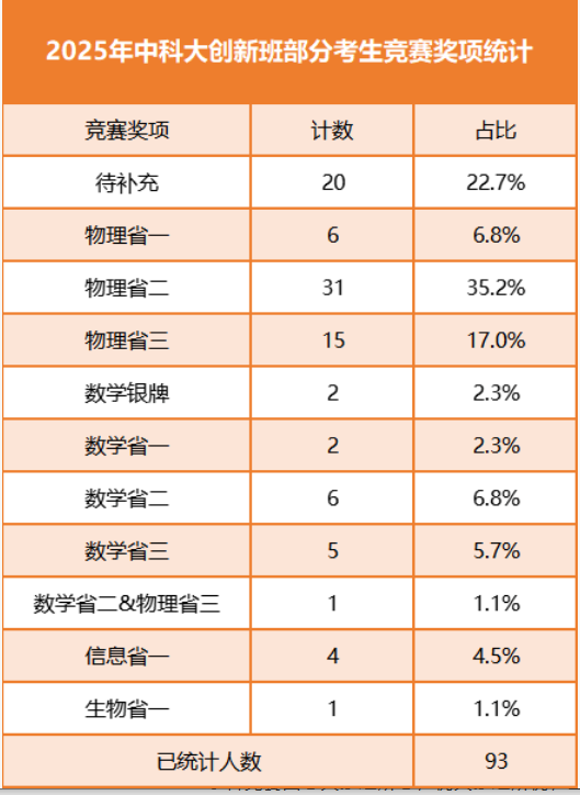 中科大创新班录取的考生中拿到数学、物理省二、省三的同学都不少。虽然没有拿奖,但很多考生都是数学和物理双修的考生,