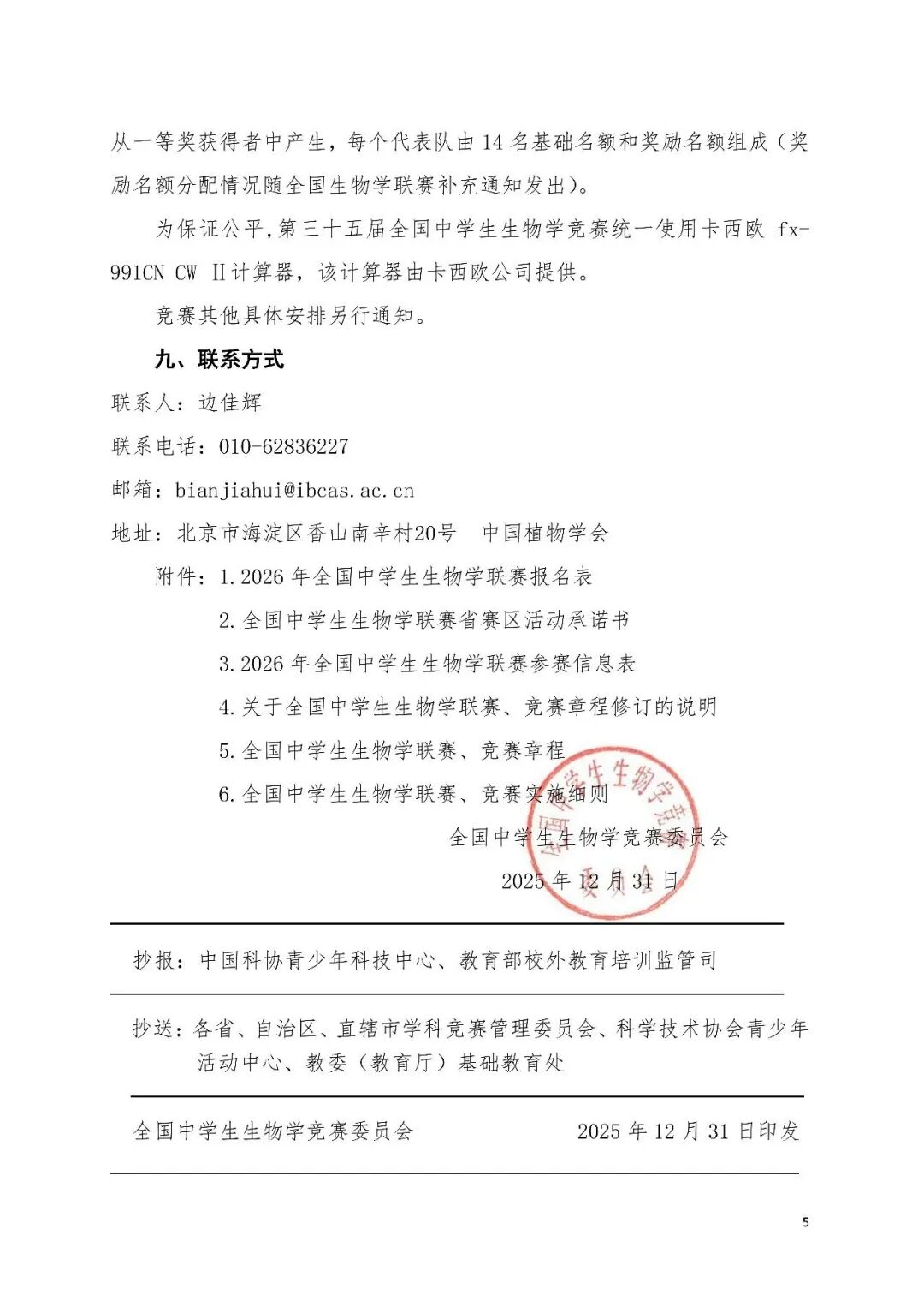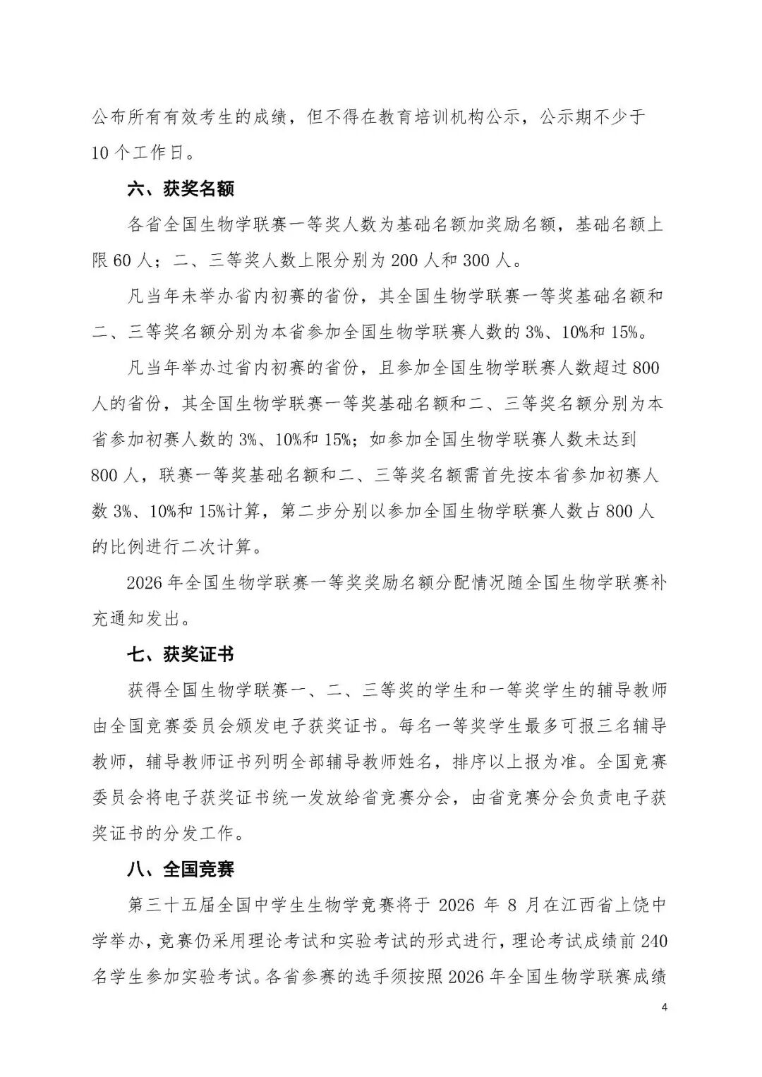 2026年全国中学生生物学联赛通知