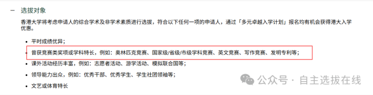 例如,香港大学多元卓越入学计划明确将竞赛奖项作为选拔依据之一。