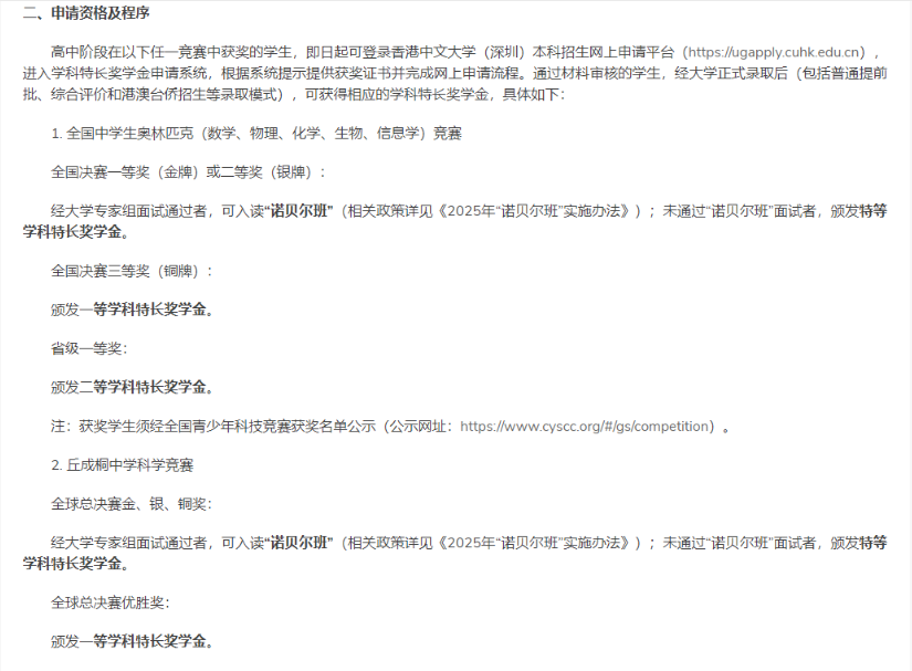 图源香港中文大学(深圳)2025年新生学科特长奖学金实施办法