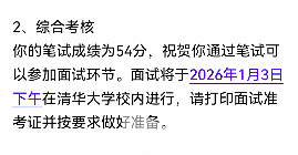 考生反馈2026年清华丘成桐数学英才班进面分数线为53分,今年,清华特别通知了每位考生进面分数!恭喜各位进面的同学!面试时间1月3日12点50到5点30为面试考核时间!
