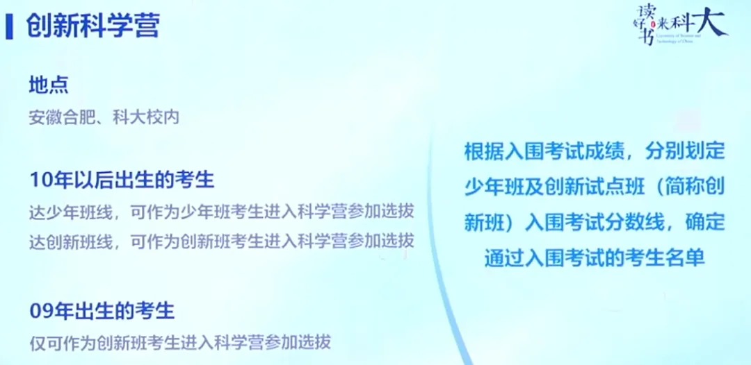 少年班“创新试点班”:面向2009年1月1日及以后出生的考生;