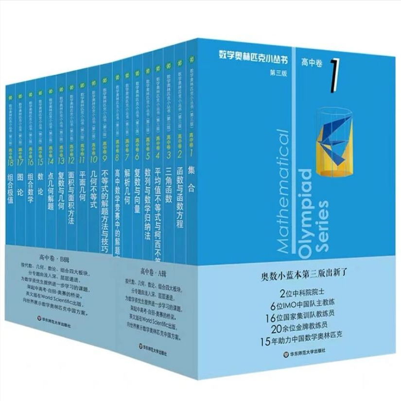 《数学奥林匹克小丛书(高中卷)》共18卷,非常经典的高中数学竞赛系列书籍,其中习题难度较高,覆盖了从高中数学联赛到CMO所需的知识,该轮次推荐学习前8卷,知识讲解的内容不多,能够帮助考生养成独立思考的习惯。