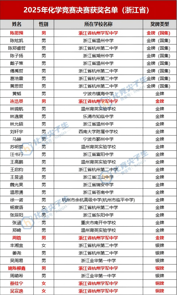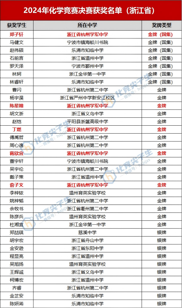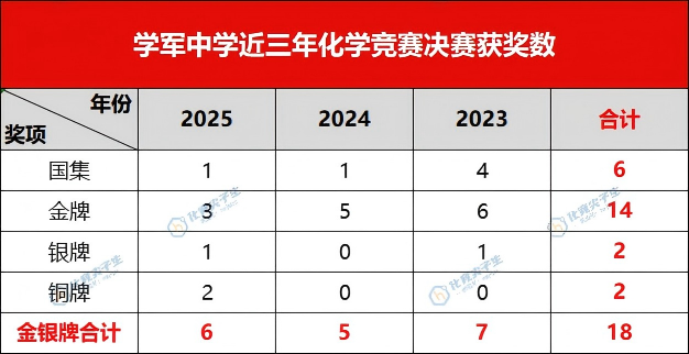 浙江省学军中学近三年化学竞赛决赛获奖盘点