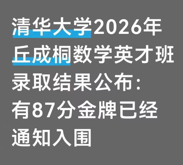 清华大学2026年“丘成桐数学英才班”测试结果已经公布!恭喜各位通过的同学们,直接降一本线成为清华大学的一员,清华大学校方通过电话已经通知了相关同学,系统也即将公布。自主选拔在线团队整理相关内容,一起来看!