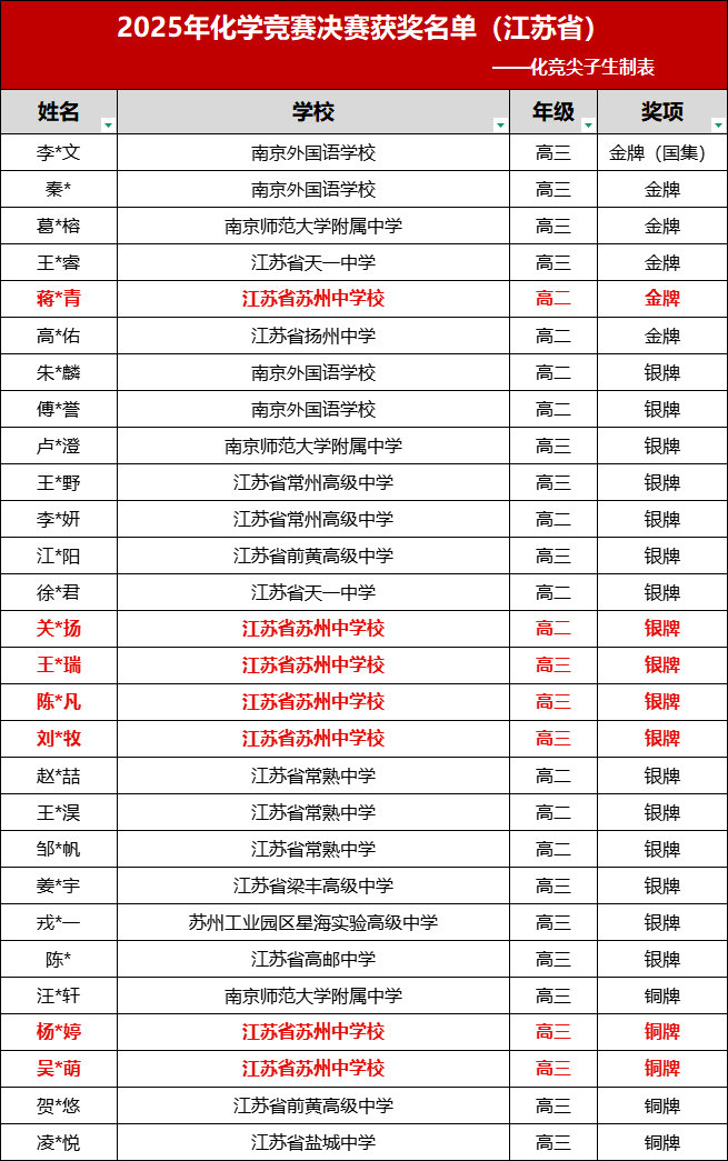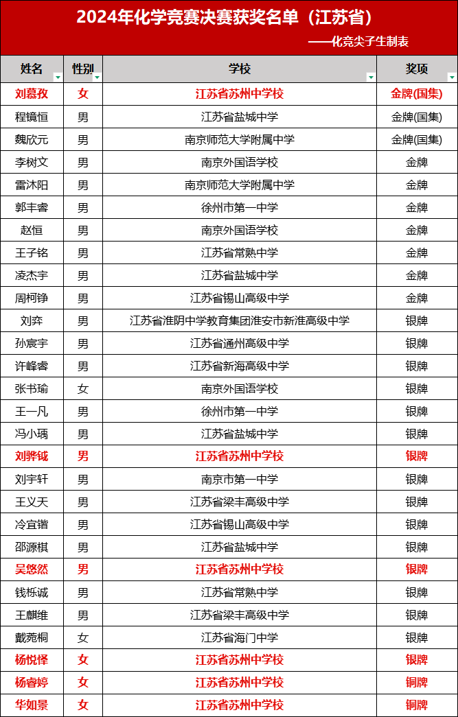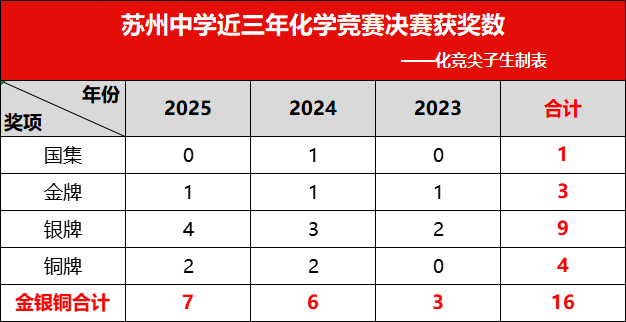 苏州中学近三年化学竞赛决赛获奖盘点