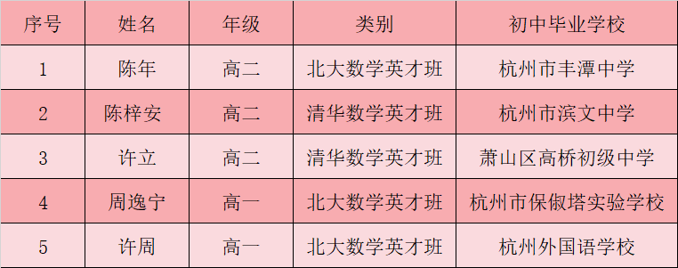 浙江省学军中学5人入选2026年北京大学清华数学英才班