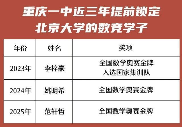 至此,重庆一中已连续三年有学子通过数学竞赛提前锁定北京大学,充分彰显了学校在拔尖创新人才培养方面的持续成效与深厚底蕴。