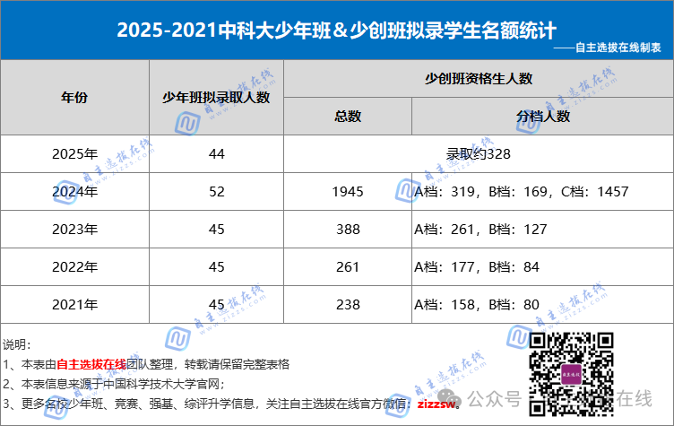 以下是2025-2021年中科大少年班&少创班拟录取学生名额及资格生人数统计: