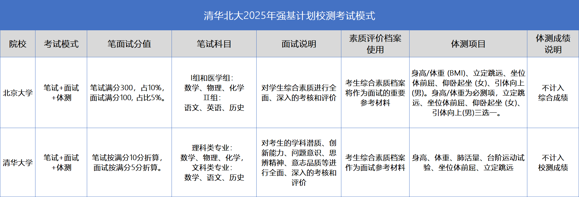 2025年清北在破格生上不再单独考核,而是需要与普通考生一同参加笔试、面试、体测全流程考核,不再享受“免笔试”或“笔试满分”等优惠。对于破格生来说要求则更高。