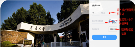 1、登录准考证打印网址,输入阳光平台报名时注册的手机号获取短信验证码后,通过验证码登录(同之前考点城市选择一样)。