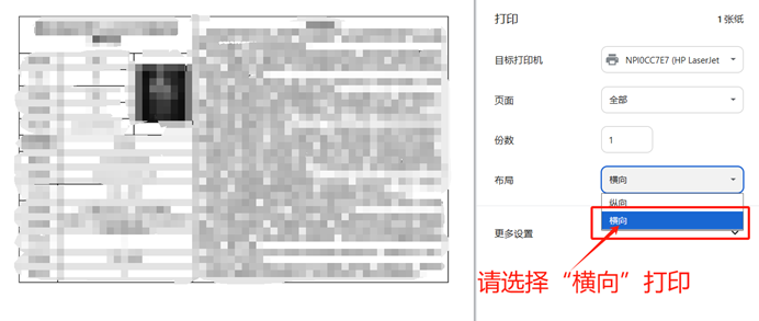 5、布局选择“横向”,再点击打印即可。
