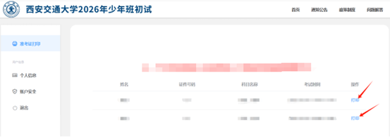 西安交通大学2026年少年班初试准考证打印须知