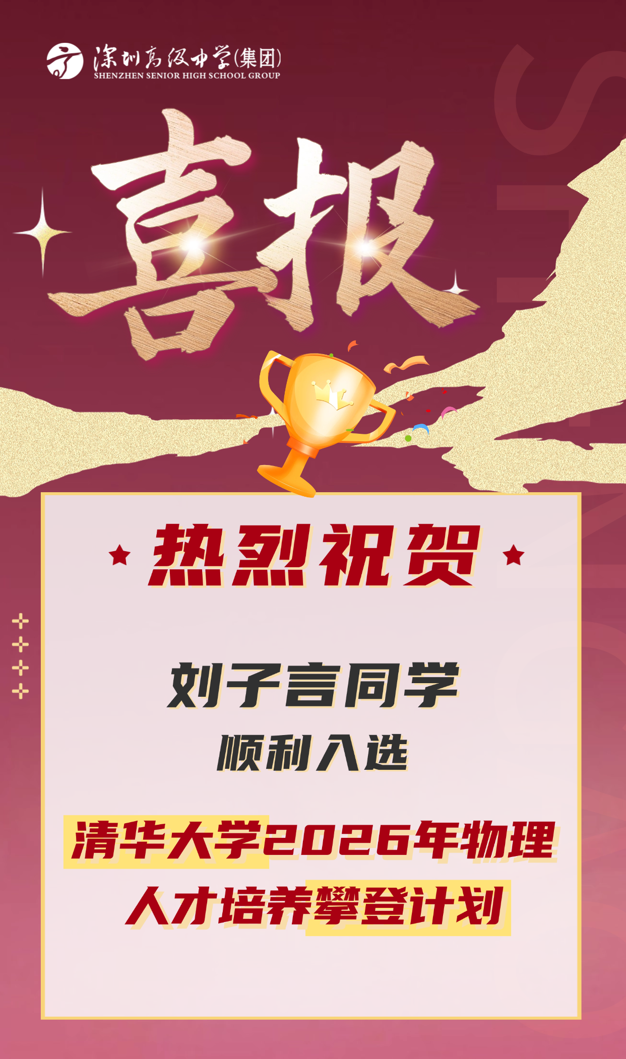 近日,清华大学2026年物理人才培养攀登计划入选名单公布,深圳高级中学刘同学成功入围!这份荣耀,既是刘同学的奋斗硕果,也是深高(集团)拔尖创新人才贯通培养成效的有力印证。自主选拔在线团队整理相关内容,一起来看!