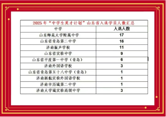 2025年,山东师大附中科技创新工作成绩斐然。在“中学生英才计划”中,17名学子成功入选,蝉联全省榜首;自2013年以来,学校累计已有139人获此殊荣,入选总人数持续位居山东省各中学首位。与此同时,学校在多项国家级白名单赛事中同样捷报频传,在全国青少年科技创新大赛、全国高中生创新能力大赛等重量级赛事中屡获国家级奖项。这些成果得益于学校深化“双高合作”,构建贯通式创新教育体系,全方位支持学生科技创新能力培养。