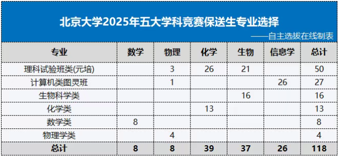 从2025年清北两校的实际录取数据来看,五大学科竞赛保送生的专业并未完全受限,仍有一定的选择空间。