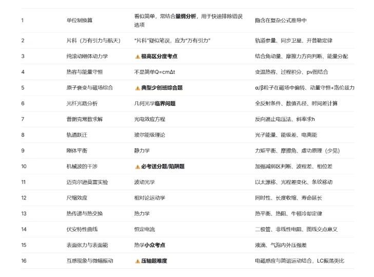 2025年-2024年中科大少年班物理入围考试考点