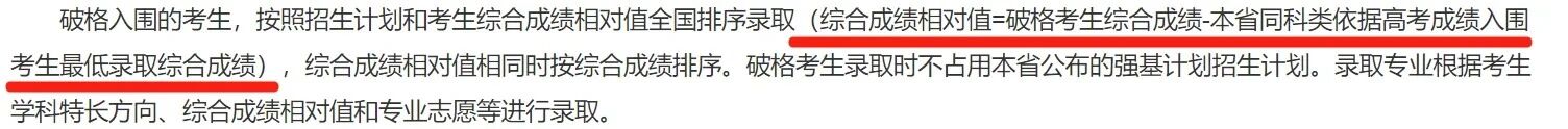 去年,北大强基将“综合成绩相对值”全国线划到了-3.04,也就是说,只要分数线不低于本省本专业非破格分数线3.04分的破格生,都可以被录取。