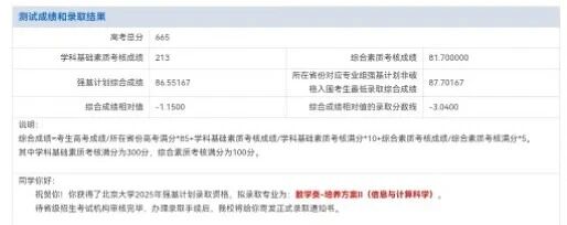 举个例子,去年安徽一名北大数学类专业破格生的综合成绩是86.55167,安徽省数学类非破格分数线是87.70167,那么这名破格生的综合成绩相对值就是86.55167-87.70167=-1.15分。