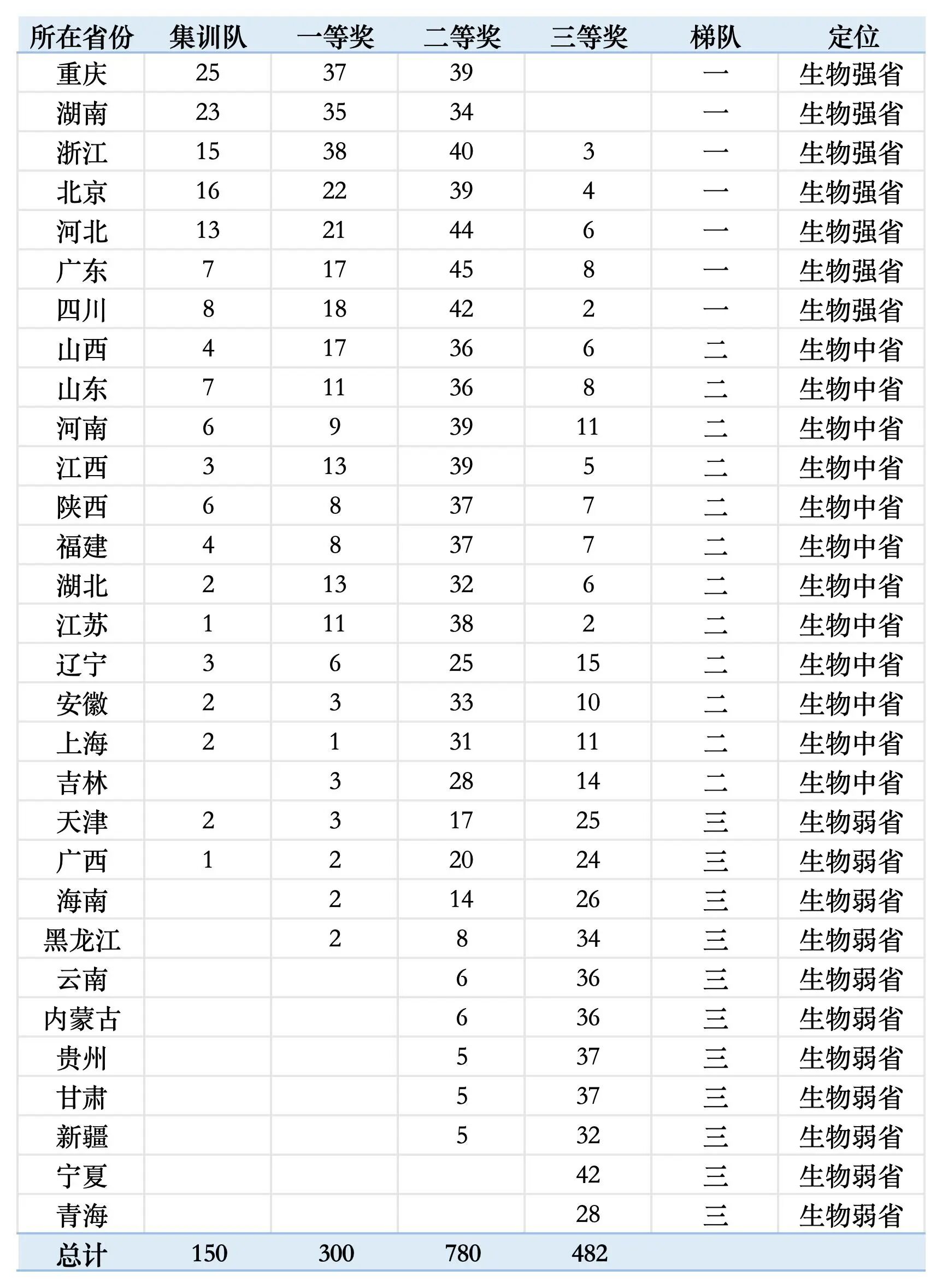 生物竞赛强、弱省划分