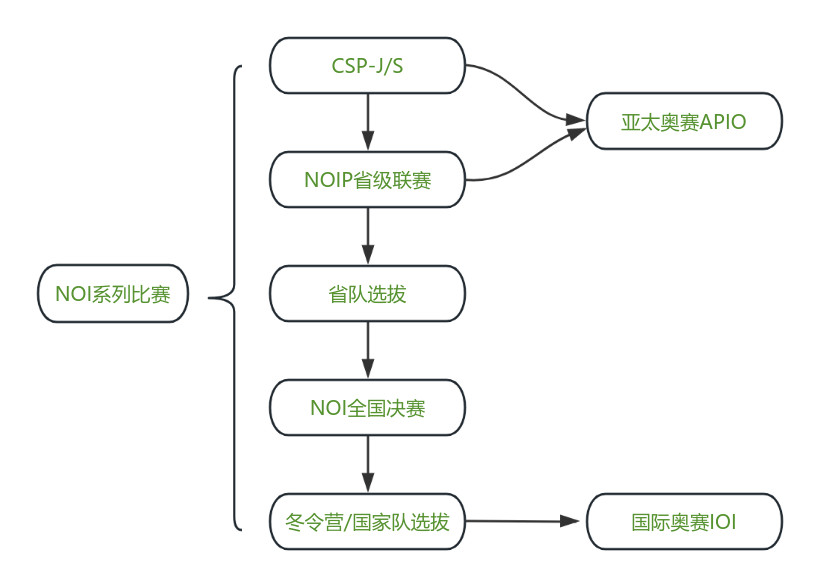 信息学奥赛的时间跨度比较大。整个系列的比赛,从最初的CSP-J/S到IOI结束,整整经历两年的时间。