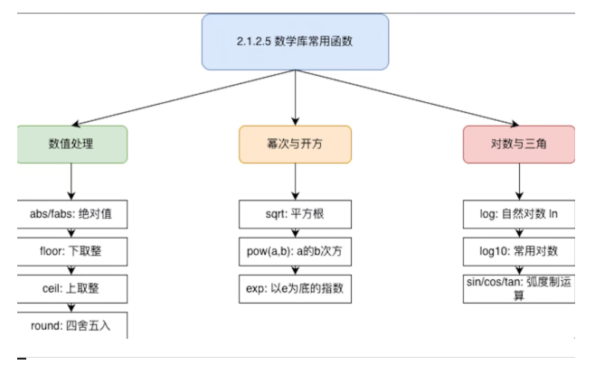 ceil(2.1):向上取整,即寻找不小于 2.1 的最小整数,结果为 3.0。