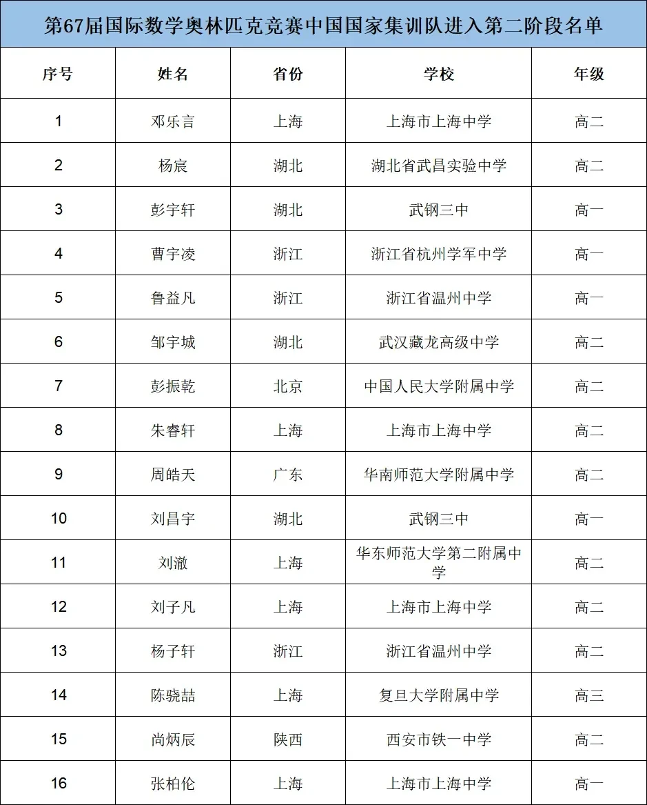 第67届国际数学奥林匹克(IMO)中国集训队第一阶段的选拔工作已顺利结束。在为期四天的严格考试中,16名才华横溢的选手脱颖而出,成功晋级第二阶段。接下来一起来看具体的现场选拔概况!