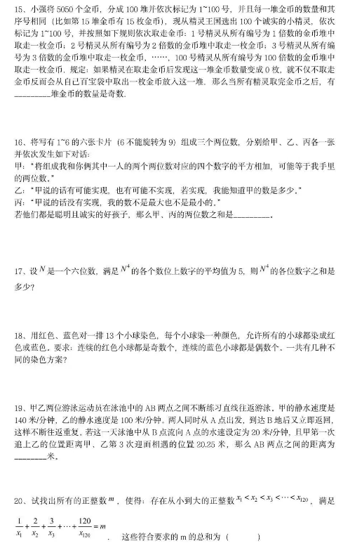 推荐阅读>>>全国重点中学丘成桐少年班选拔试题汇总