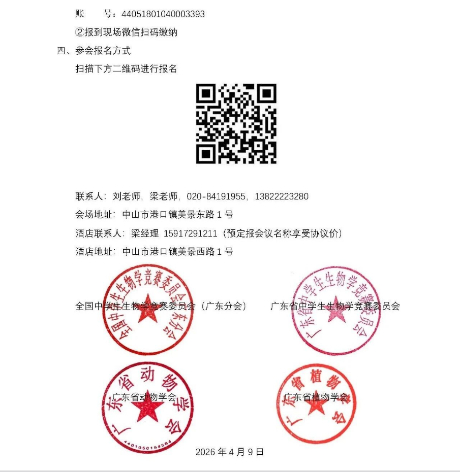 2026年第四届广东省中学生生物学竞赛研讨会通知