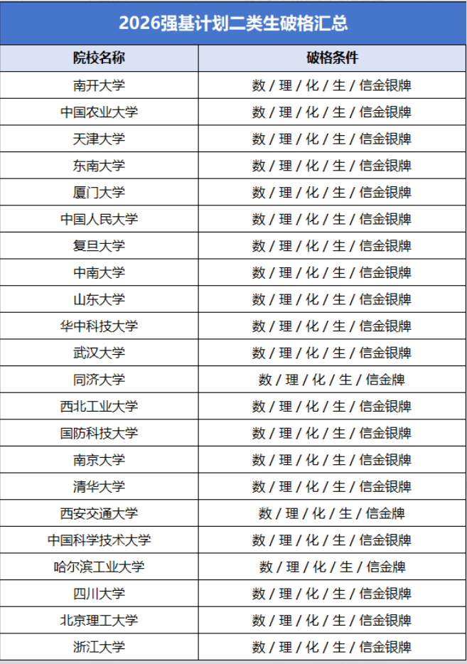 2026年强基二类生(竞赛破格)最直观的变化,是金银牌认可度严重分化。