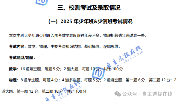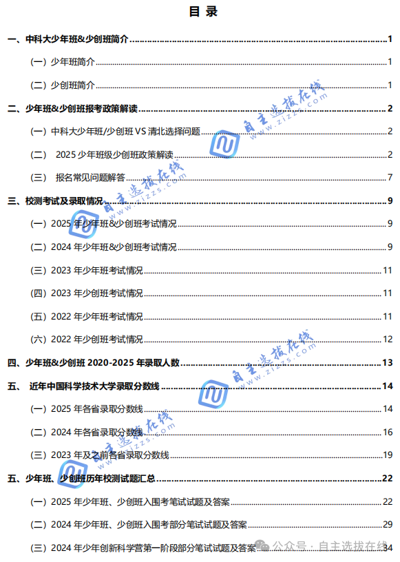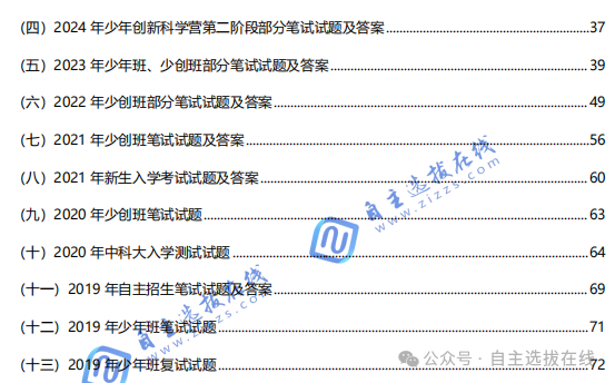 为解答各位考生家长的问题,自主选拔在线团队特整理了《中科大少年班少创班2026报考指南+历年试题》电子资料,里面包含了中科大少年班的报名条件、政策解读、材料准备等常见问题,以及往年招录数据、校测考试内容、近7年校测真题与答案!目标中科大少年班少创班的考生家长务必人手一份,PDF高清版本可下载打印!