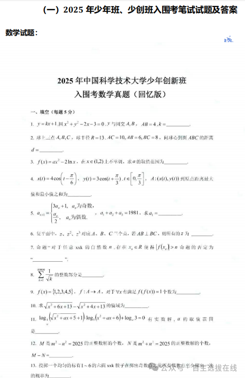 ⭐2019-2025历年少年班试题可进行练习: