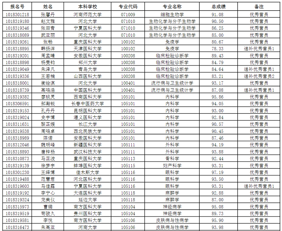 吉林大学白求恩第一医院2024年优秀营员及递补优秀营员名单