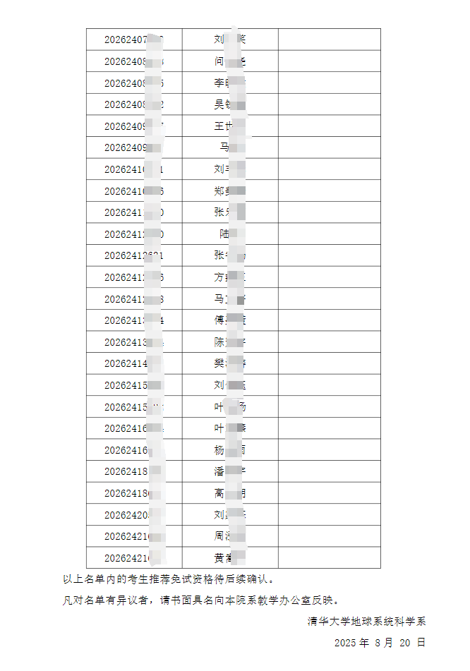 清华大学2026年地球系统科学系大气科学等专业推免生直博入围综合考核名单已确定,都有哪些考生入围?自主选拔在线团队已整理,哪些信息值得考生参考?