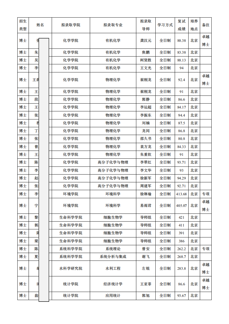 北京师范大学2026年接收推荐免试攻读研究生拟录取名单