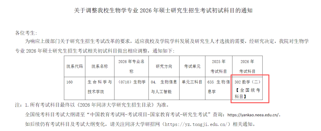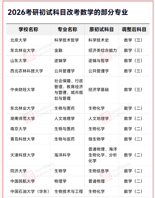 近日,多所高校发布调整2026年硕士研究生初试科目的通知,数学成为调整的重点科目。最突出的变化是——北京大学、山东大学等高校的哲学、经管类部分专业改考数学(三)。南京大学、同济大学等高校的生物相关专业初试科目调整为数学(二)。自主选拔在线团队整理相关内容,一起来看!