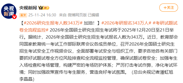 343万!2026年全国硕士研究生报名人数公布