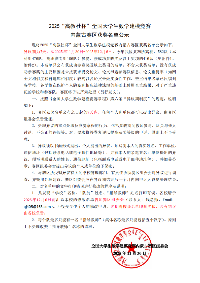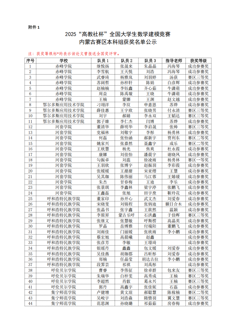 2025年“高教社杯”全国大学生数学建模竞赛内蒙古赛区获奖名单