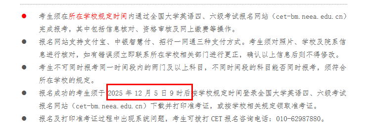 12月5日上午9:00,考生可自行登录全国大学英语四、六级考试网站(网址:http://cet-bm.neea.edu.cn)。