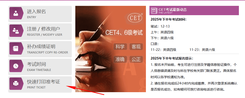 报名本学期四六级笔试的考生请注意:自12月5日9时起可以打印笔试准考证啦!作为进入考场的 “通关文牒”,准考证的重要性无需多言,少了它哪怕复习得再充分也无法踏入考场。为了避免大家错过打印时间、踩坑操作误区,自主选拔在线团队准考证打印指南,建议全体考生码住收藏!