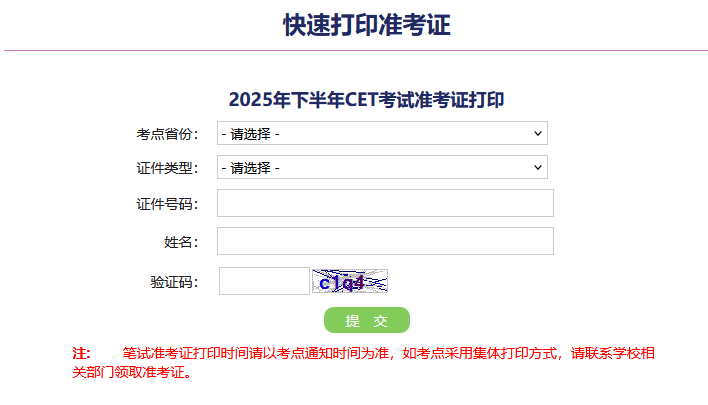 注:笔试准考证打印时间请以考点通知时间为准,如考点采用集体打印方式,请联系学校相关部门领取准考证。