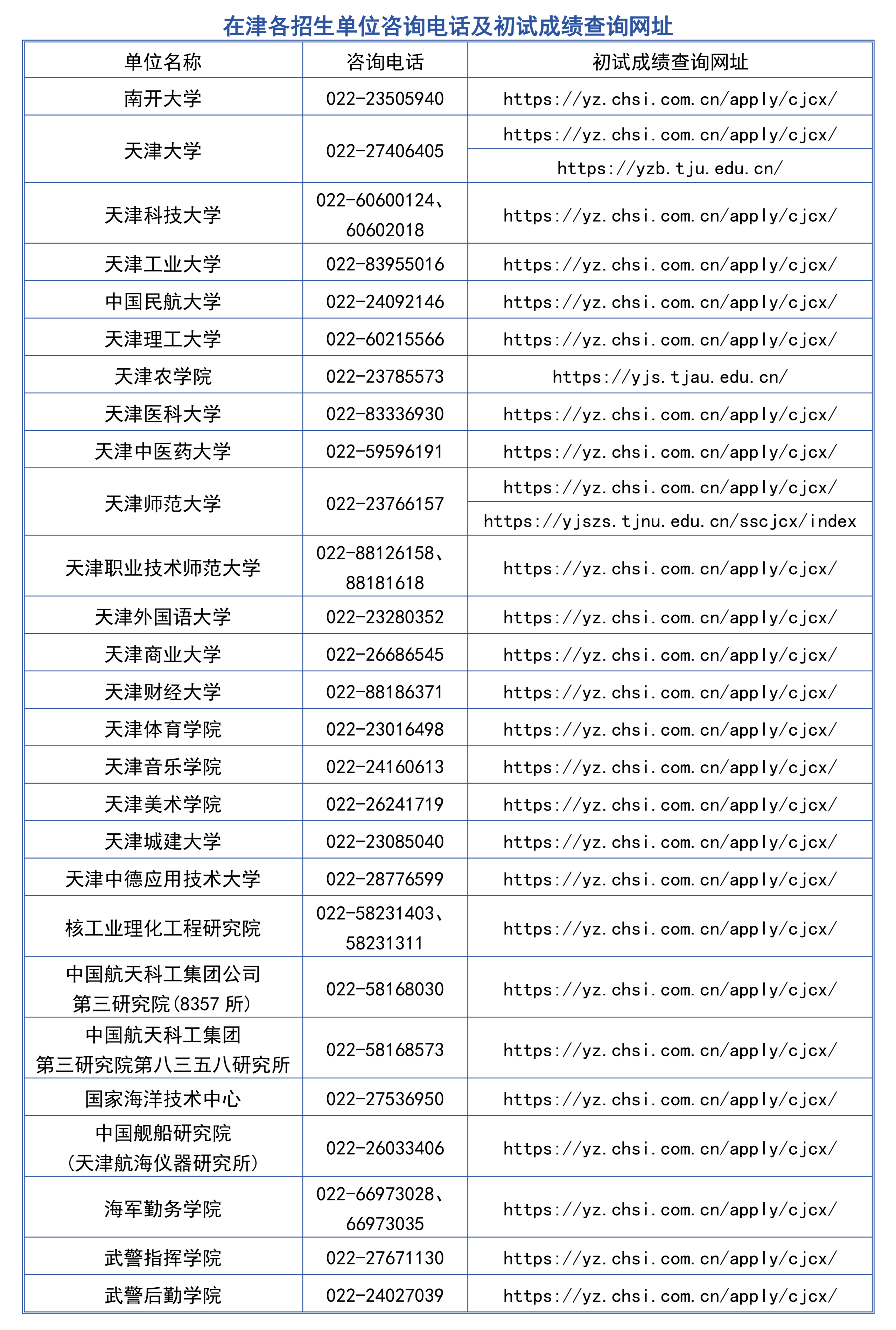天津市2026年全国硕士研究生招生考试(初试)成绩查询时间及复核安排