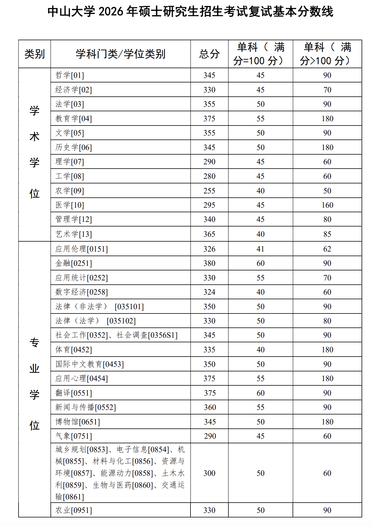 中山大学2026年硕士研究生招生复试分数线正式公布,北师大在国家分数线基础上,结合本校招生计划、生源质量及学科特点,自主划定复试分数线。自主选拔在线团队更新相关内容,快来查看吧。