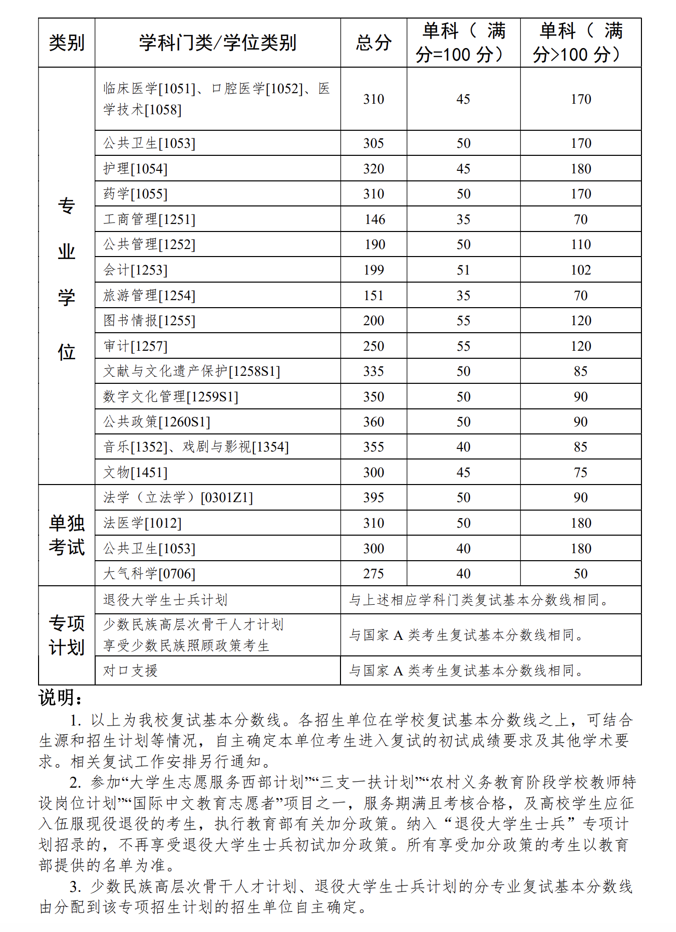 北京大学2026年硕士研究生复试基本分数线2026-03-13