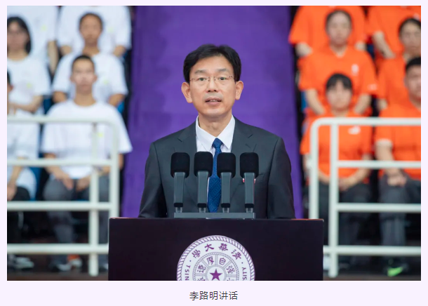 校长李路明发表了题为“涵养厚德品格 担当时代重任”的讲话。他代表全校师生员工向新生表示欢迎,并向同学们介绍了110年前梁启超先生在清华园演讲时以《周易》中“天行健,君子以自强不息”“地势坤,君子以厚德载物”勉励清华学子、后来清华以“自强不息、厚德载物”作为校训的故事。李路明说,作为新时代的清华人,同学们身处于中华民族伟大复兴的关键时期,更要以厚德立身,开阔胸襟气度,拓展人生格局,才能成就自己、成就他人,不负韶华、不负时代。厚德就是要器量宽宏,“责己甚厚,责人甚轻”。希望大家严于律己、宽以待人,乐于学习他人的长处,善于改正自身的过失,共同为构建和谐包容、向上向善的社会贡献力量。厚德就是要胸怀博大,“处世接物坦焉无所芥蒂”。希望大家襟怀坦荡、言行一致、无私无畏,养成纯粹清澈的优秀品质,永葆为国为民的赤子之心。厚德为先、才华为重,德才兼优方能“出膺大任”。希望大家砥砺品德、增长才干,做到又红又专、全面发展,努力成为有理想、有本领、有担当的社会主义建设者和接班人。