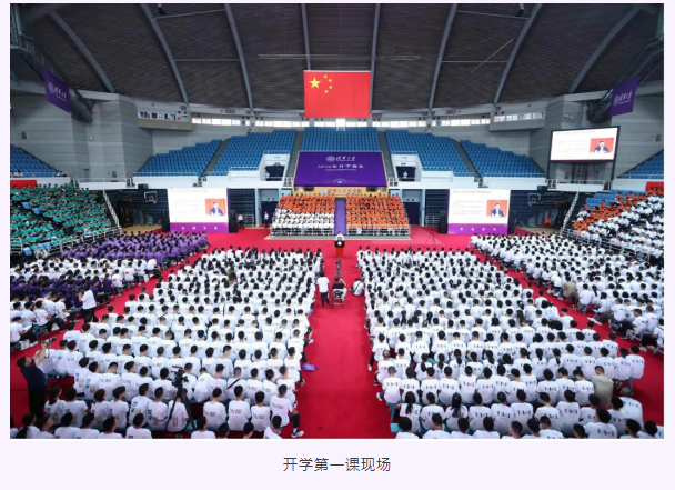3000余名新生在综合体育馆主会场参加典礼并聆听开学第一课。他们满怀青春热忱,从这里踏上在清华追逐梦想、拥抱成长的崭新旅程。