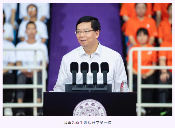 典礼后,邱勇以“树立远大理想,赓续光荣传统 为全面建设社会主义现代化强国贡献青春力量”为主题讲授了2024级本科生新生开学第一课。