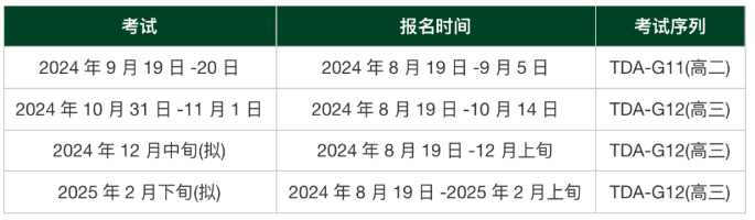 2024-2025学年诊断性测试(TDA)将于8月19日开放报名。