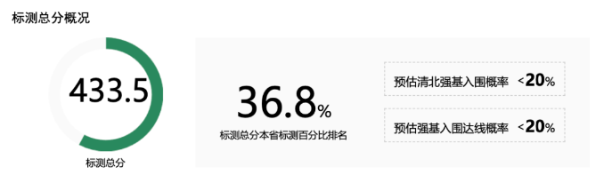 预测报告内容以学生考试客观数据为基础并通过统计推断得出的推断类型数据,包括单科高考预测分和百分比排名(标测数据指标),以及基于标测数据得出的“强基计划”入围概率。